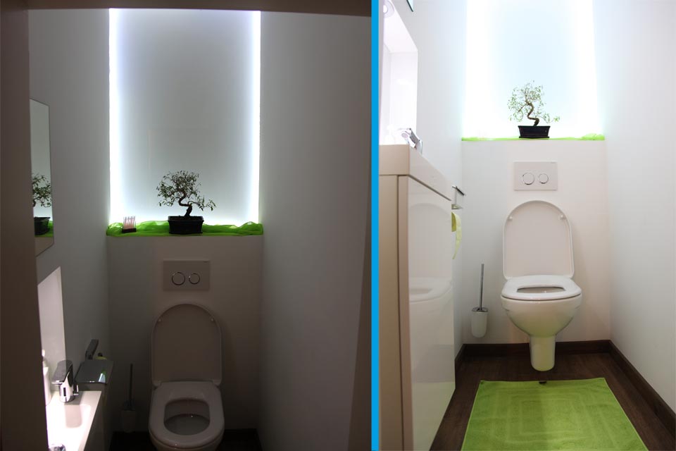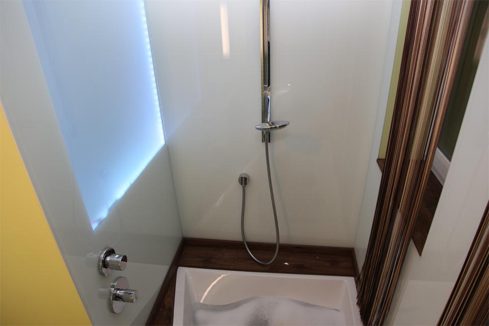 Prokjektname: Badezimmer Architekt: eigene Planung Beschreibung: Rückwandverglasung, Spiegel und hinterleuchtets Glas mit BISAFE GLASS und BISAFE GLASS COLOR.