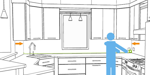 Für anschließende Scheiben, messen Sie zuerst die Wand wieder von einer Kante zur gegenüberliegenden Kante ab.
