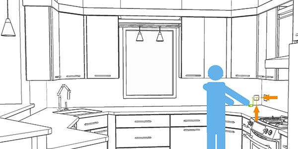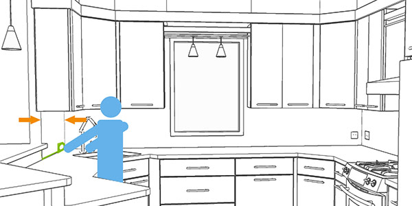 Breite: Messen Sie von einer Kante zur gegenüberliegenden Kante. Falls die Wand keinen rechten Winkel aufweist, geben Sie dies bitte bekannt.